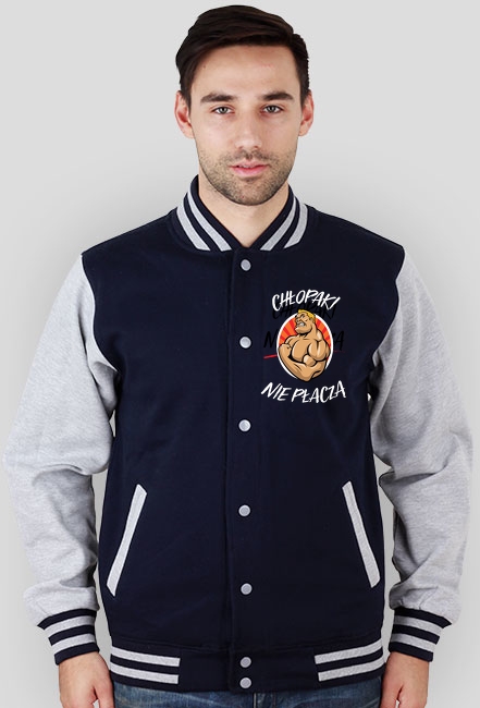 Bluza varsity jacket inspirowana amerykańskim stylem studenckim to opcja dla każdego, kto ceni sobie połączenie funkcjonalności z oryginalnym designem. Materiał, z którego została wykonana to wysokiej jakości bawełna, która ma przewiewną strukturę i daje uczucie miękkości i wygody. Posiada kontrastowe paski na ściągaczach u dołu bluzy i rękawów. Bluza jest zapinana na zatrzaski w kontrastowym kolorze.